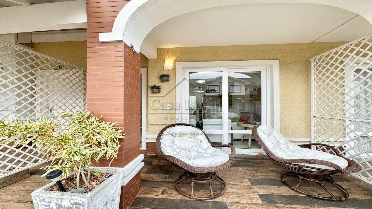 Casa em condomínio fechado, composta por 2 dormitórios e meio, sendo 2 suítes, living em 2 ambientes, cozinha americana com churrasqueira, lavabo, lavanderia, vaga para 2 veículos.