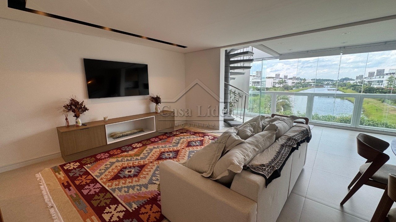 Composto por 3 dormitórios sendo 1 suíte, lavabo, sala de estar, cozinha completa, área de serviço, churrasqueira, abrigo para carro, vista eterna para o lago, jacuzzi na cobertura com pergolado e área de churrasco na cobertura.