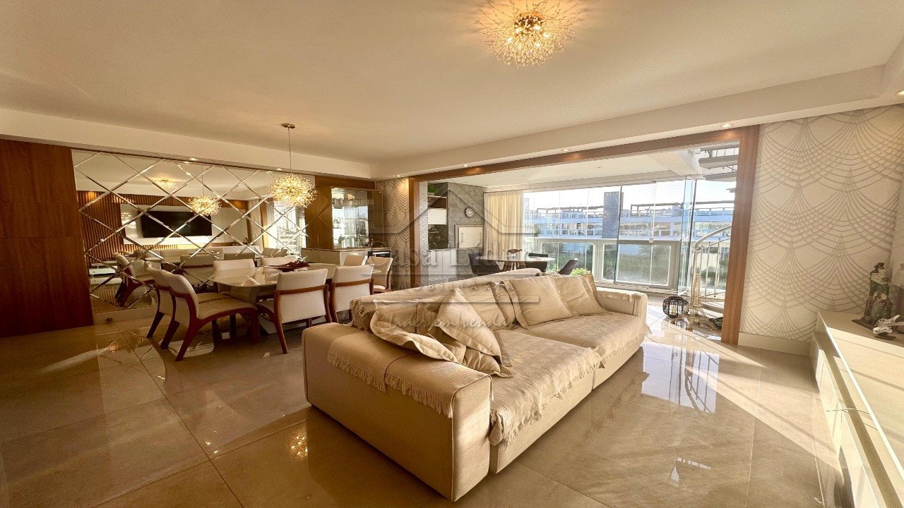 Cobertura com 3 suítes, escritório, living integrado com a sacada, churrasqueira, lavabo, mobiliada e decorada. 2 vagas de garagem.
