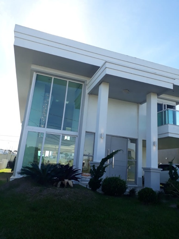 Maravilhoso sobrado à venda no Condomínio Quintas do Lago em Xangri-lá, sobrado realmente diferenciado totalmente em paredes dupladas, padrão de construção e estrutural elevados (Nível AA), fachada de luxo, localização ímpar dentro do condomínio, vista para o lago, 04 excelentes suítes sendo 01 master de 70 metros quadrados, living amplo com 03 ambientes, lareira, churrasqueira de contra balaço de viga aérea, cozinha americana, lavanderia, depósito, escada revestida em granito com viga central, projeto de iluminação natural, abrigo para 02 carros. Imóvel com 350 metros de área construída e terreno com 15,00 metros de frente por 30,00 metros de frente a fundos. Condomínio com infraestrutura completa de lazer. Características: Playground, piscina adulto/Infantil, salão de festas, espaço gourmet, academia, quadra de tênis, campo de futebol 7, piscina térmica, quadra de vôlei de praia, quadra poliesportiva, lavanderia, zelador, gás central, cancha de bocha.