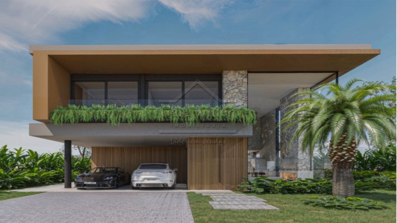 Sobrado contemporâneo beira lago com 403,29m², totalmente mobiliado, equipado e climatizado, em terreno de 457,12m². Conta com amplo living com pé-direito duplo, estar com lareira, jantar, espaço gourmet e sinuca integrados, além de cozinha separada. Possui elevador, uma suíte térrea para hóspedes e cinco suítes no pavimento superior, incluindo master com banheira e sacada. Piscina de concreto com borda infinita aquecida, paisagismo com irrigação e garagem para dois carros completam este sobrado de alto padrão.