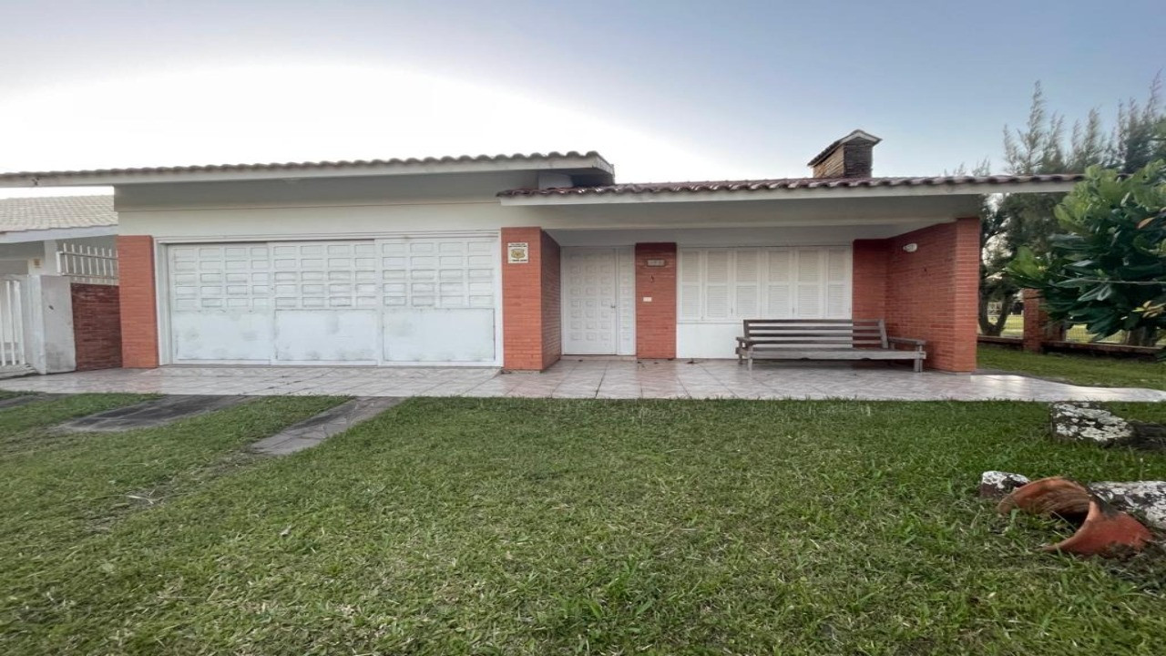 Casa térrea composta de 3 dormitórios sendo uma suíte, garagem com churrasqueira, cozinha americana, sala de estar e jantar com lareira, semi mobiliado, frente leste..