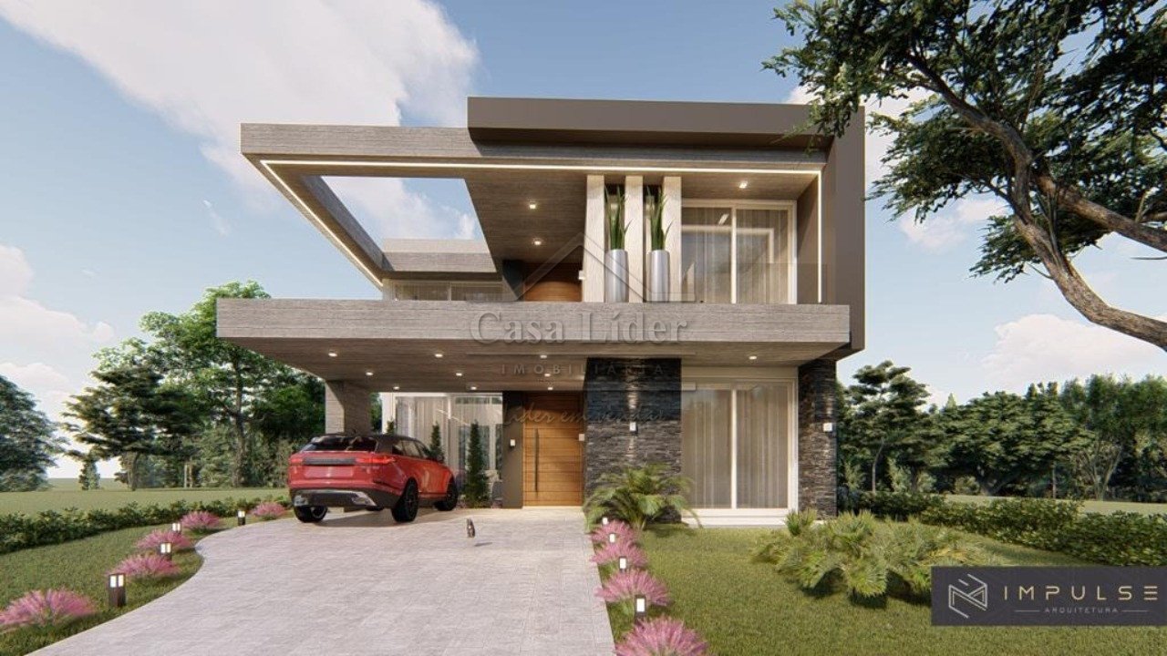 Linda casa com área privativa de 259,58m², terreno de esquina com 352,50m², com quatro suítes, sendo uma suíte térrea Master com closet, living integrado com 61,23m² e pé direito duplo. Lavabo social, cozinha Gourmet com churrasqueira, lavanderia e depósito independente e gás central. Lounge externo com 41,82m², lavabo exclusivo para área externa, espaço para piscina (será entregue sem piscina). Espera para automação, abrigo para dois carros com espera de tomada para carregamento. Esquadrias em PVC branco, sendo os dormitórios com persianas motorizadas e tela mosquiteiro em todos os ambientes e móveis fixos. Projeto de Fotovoltaico (energia solar).