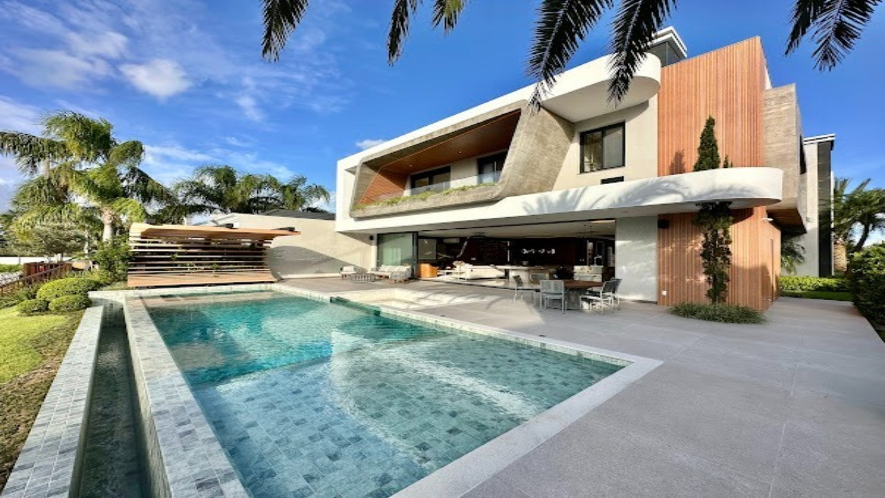 Sua linda casa distribuídas em 596m², 5 suítes (sendo uma master com hidro e closet), lavabo, sala de jantar, sala de estar, espaço gourmet, sala de TV com retroprojetor, sala de jogos, espaço kids, lavanderia, elevador, adega, piscina de