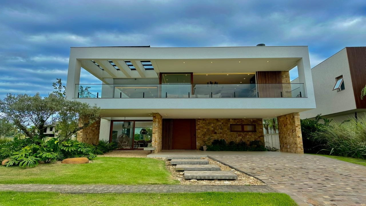 Descubra o requinte e conforto deste imponente sobrado de 416 m² com vista deslumbrante para a lagoa. Com quatro suítes espaçosas, pé direito duplo e um lavabo elegante, cada detalhe foi cuidadosamente planejado. Totalmente mobiliado e finamente decorado com acabamento classe AAA, possui esquadrias em PVC e persianas automatizadas para o máximo de praticidade. A piscina de concreto complementa o cenário, ideal para relaxamento e entretenimento. Equipada com placas solares instaladas, oferece eficiência energética e sustentabilidade. Esta propriedade está pronta para proporcionar uma vida de luxo e conforto incomparáveis.