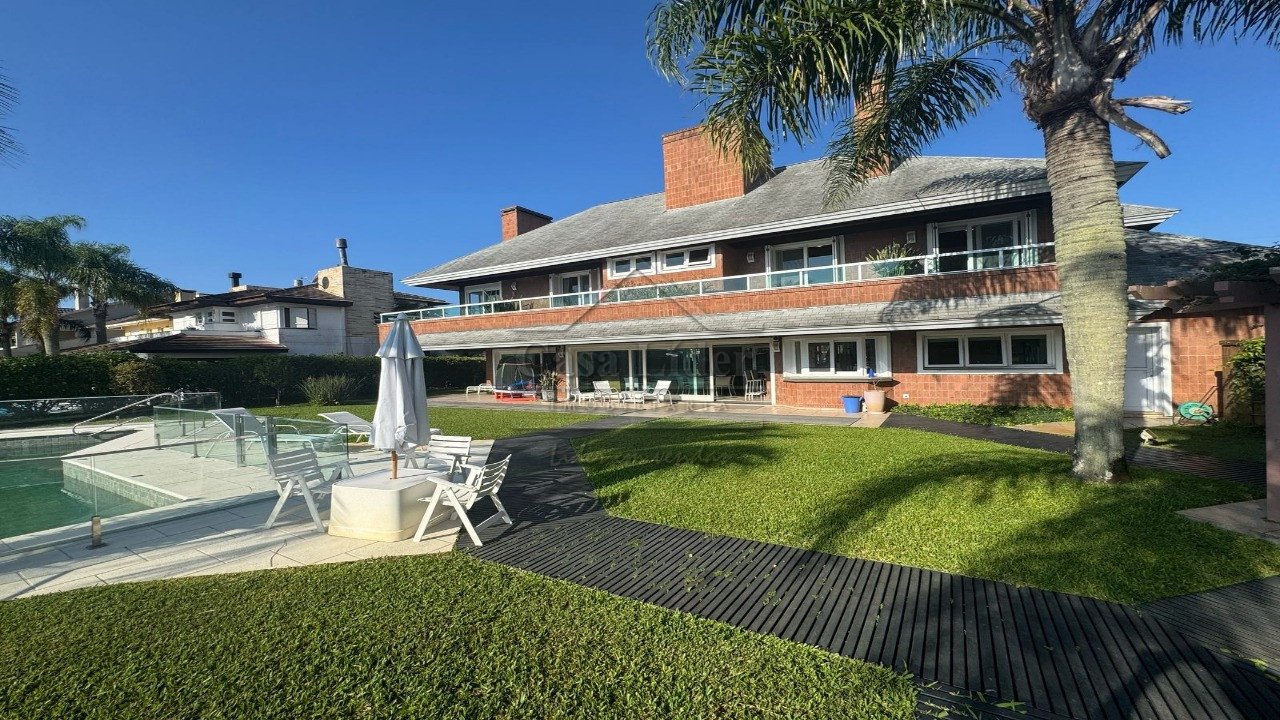 Casa espetacular no condomínio Lagos Park, em Atlântida, com 472m² construídos em um amplo terreno de 900m² à beira do lago. Conta com 5 dormitórios, sendo 4 suítes, living com lareira, área gourmet com churrasqueira e uma bela piscina integrada à paisagem. Um refúgio completo, com conforto, sofisticação e vista deslumbrante.