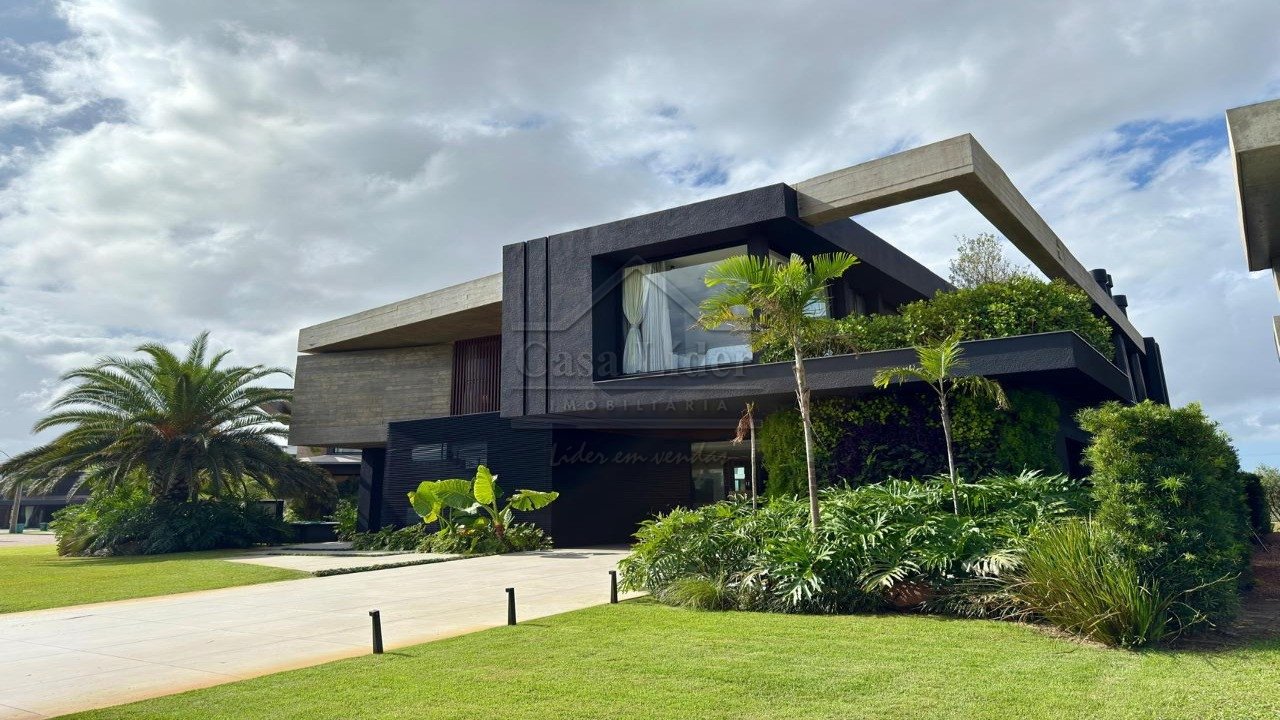 Sobrado beira lago no condomínio Sense, com 5 suítes, piscina e lareira, finamente mobiliado e decorado, em um terreno de 608m² e com 560m² de área construída, oferecendo elegância e conforto em cada detalhe.