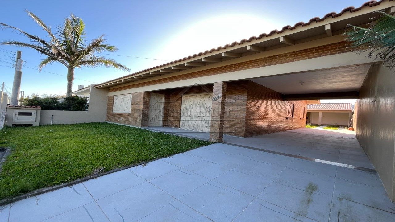 Ótima casa com pé direito alto, próxima do mar, com três dormitórios sendo um suíte, sala de estar com lareira, jantar integrado com a cozinha, anexo com dormitório, banheiro, lavanderia, churrasqueira, espaço coberto para quatro carros