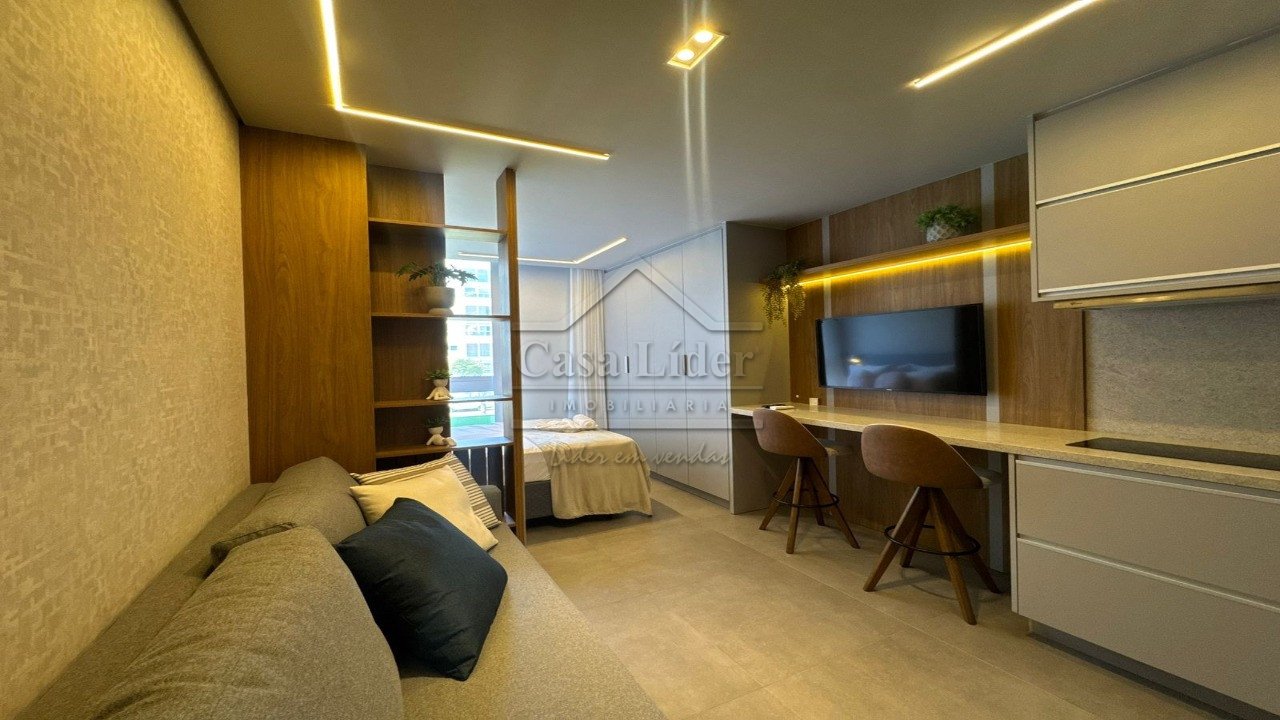 Loft mobiliado e decorado no Livin em Atlântida, com ambiente integrado, moderno e funcional. Conta com móveis planejados, eletros de qualidade e decoração elegante.