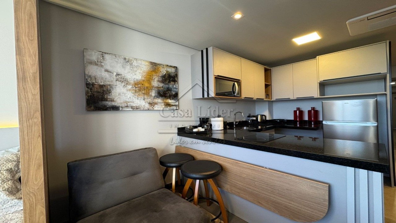 Loft mobiliado e decorado no Livin em Atlântida, com ambiente integrado, moderno e funcional. Conta com móveis planejados, eletros de qualidade e decoração elegante